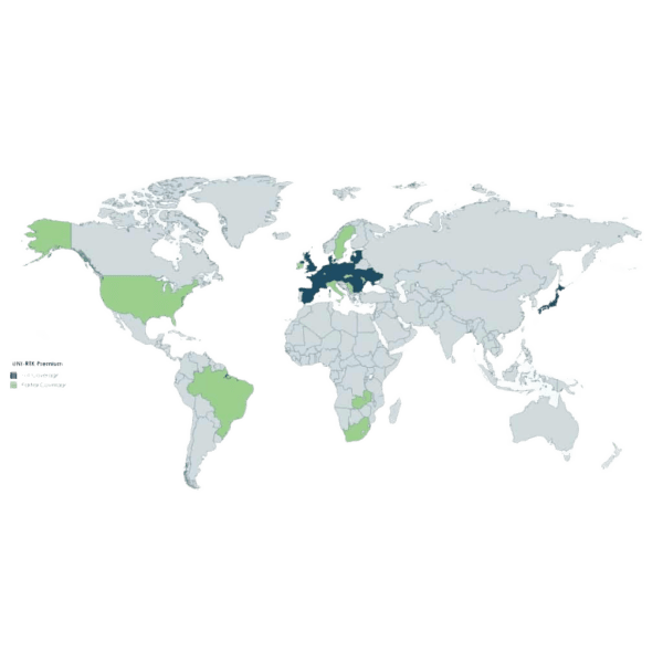 RTK stands for Real-Time Kinematics and is a differential GNSS technique which the UNI-GR2 supports in order to achieve centimeter accuracy. In summary, using this technique the UNI-GR2 as a rover receives a correction signal from a base correction provider such as UNI-RTK Premium in order to resolve the main errors of the rover and to get a centimeter-accurate fix.